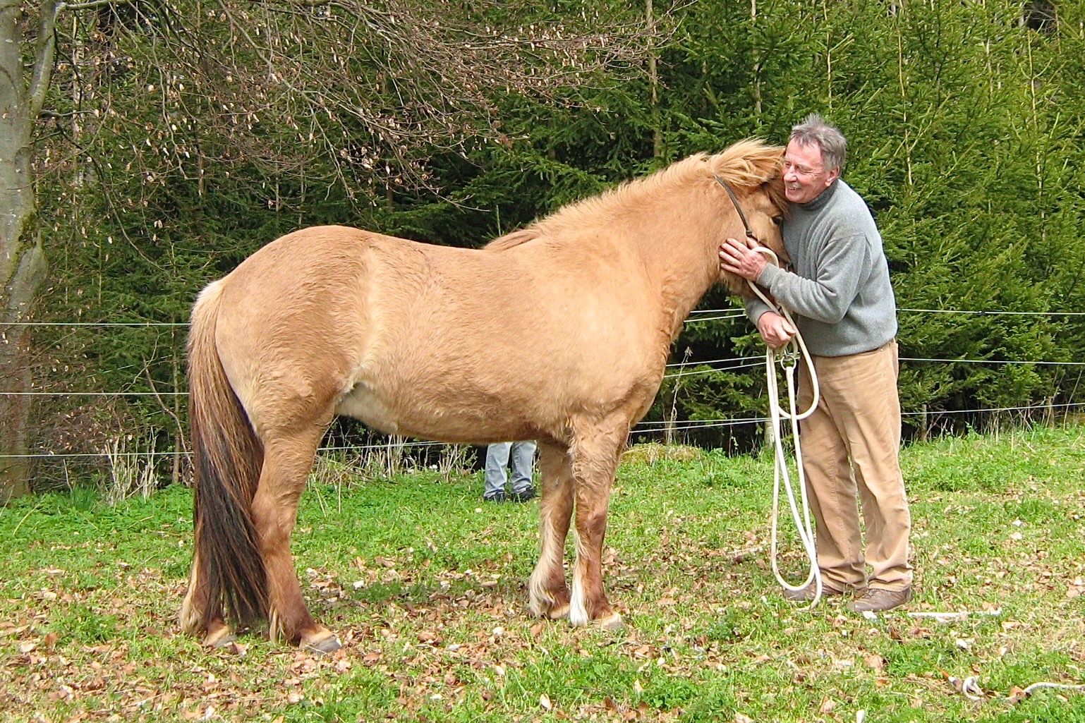 „Deine Erklärungen und Videos sind „genial“… hab sie bei beiden Pferdegruppen (Islandherde und privat 7 verschiedene Pferde) mehrfach ausprobiert! Sogar der 30jährige Haflinger Max findet, dass ich seine Sprache spreche, und ist total lieb mit mir mit gegangen. Das Aufhalten war bei ihm ein Schlüssel-Erlebnis, denn sein anderes Halfter habe ich immer total umständlich drauf gemacht… die Ohren umgeknickt… mit dem Knotenhalfter war es „easy“. Auch die kleine Ponydame Maya, die mir letzte Woche frech und sogar steigend entgegenkam, war seither total friedlich! Mit gesenktem Kopf hat sie meine Streicheleinheiten genossen… Es war so „mental“ wahrnehmbar_ „Wie gut, dass ich dir vertrauen kann.“ (U.B.)